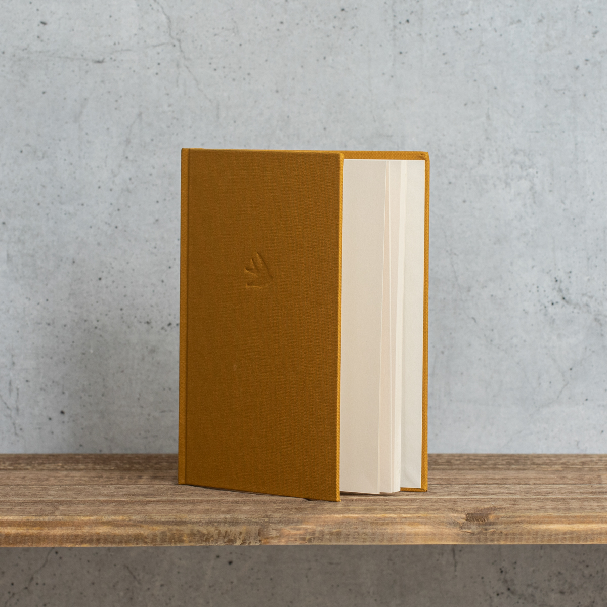 Hardback notebook lined with fabric with swallow in bas-relief.