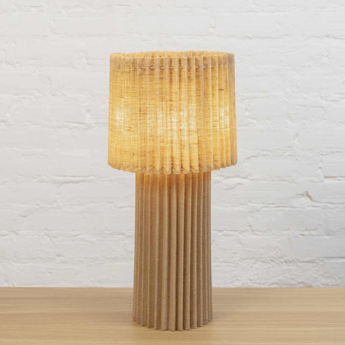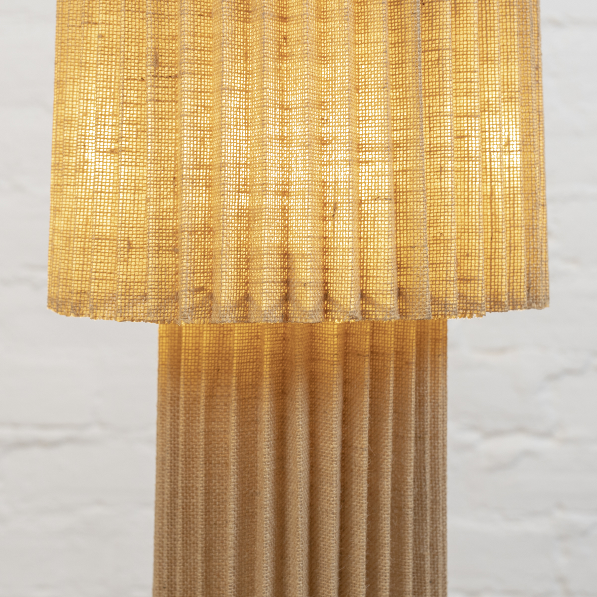 This table lamp is made of natural jute and will thrive in a tropical setting. Place the lamp on a side table or on a console table in your favorite room.