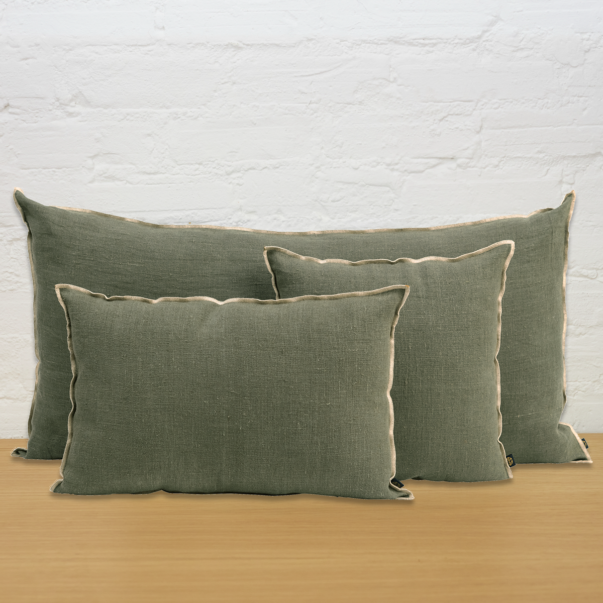 Capa de almofada em linho com vivo beige - Kaki (40 x 60)