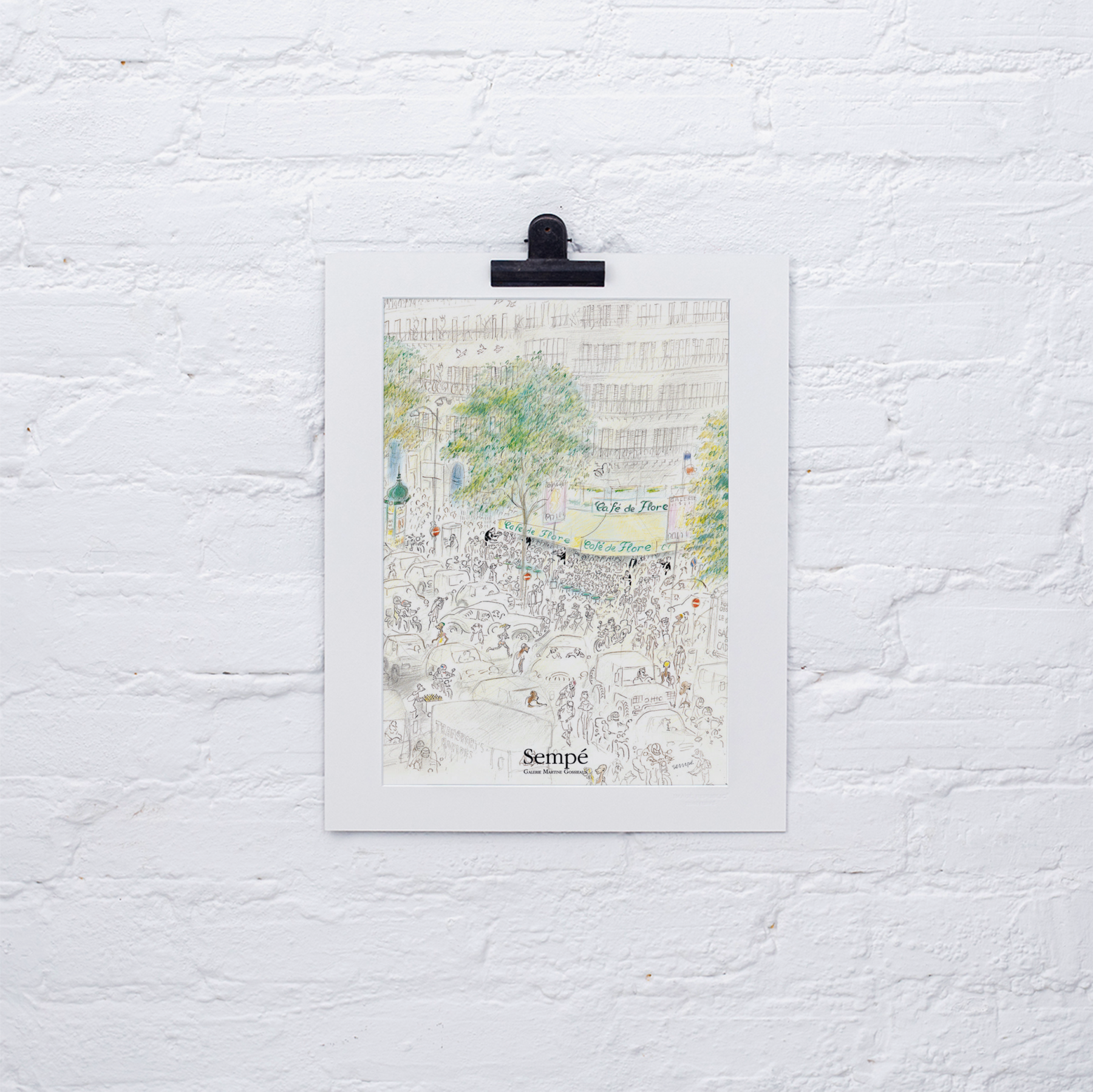 Atravessamos toda a Paris em Saint-Germain-des-Prés! Sob o olhar irónico de Jean-Jacques Sempé, o terraço do famoso Café de Flore estende-se aos engarrafamentos de carros e parisienses no mÃtico cruzamento. A profusão de rostos e situações é uma fonte inesgotável para uma exploração sociológica!